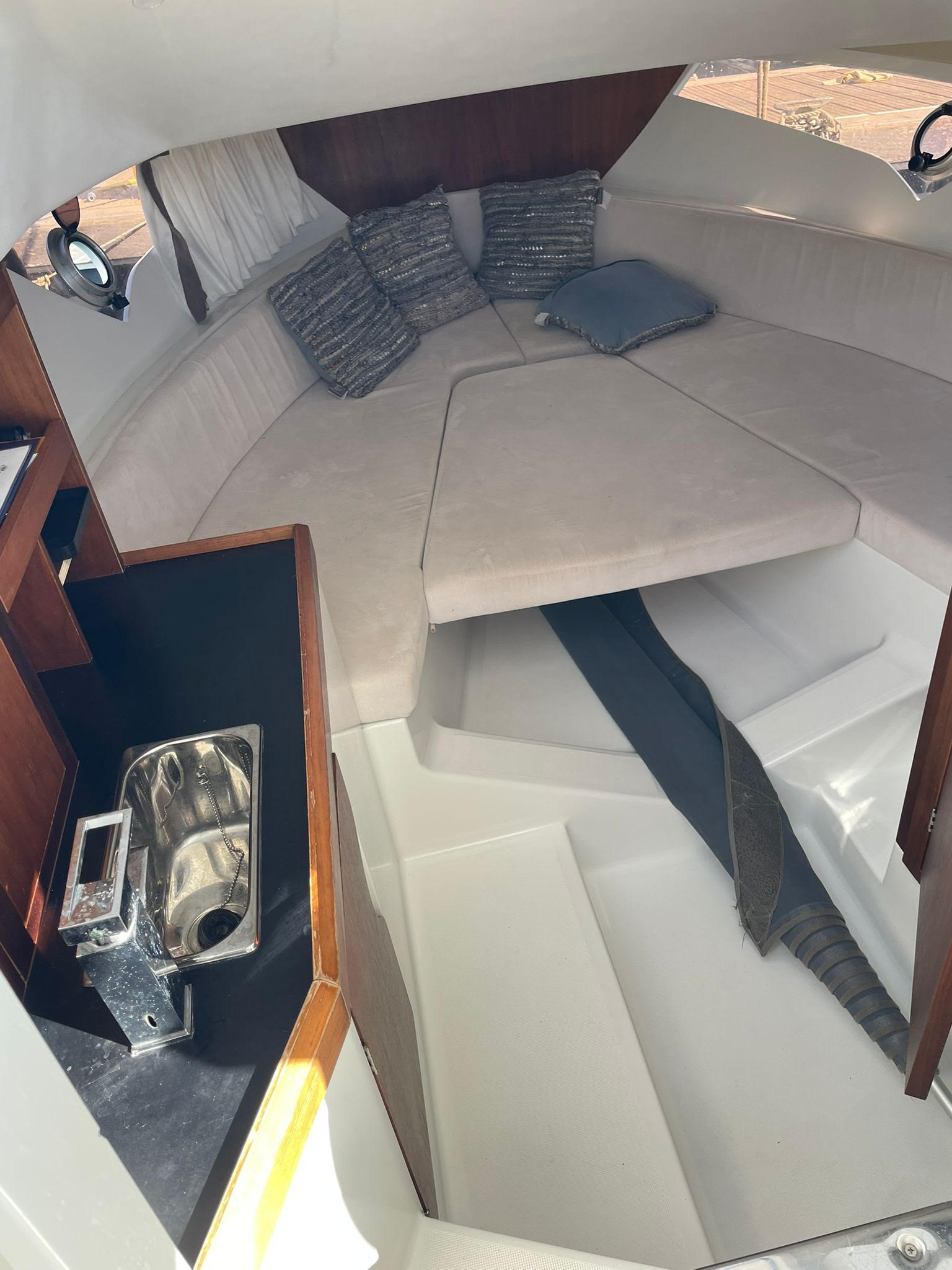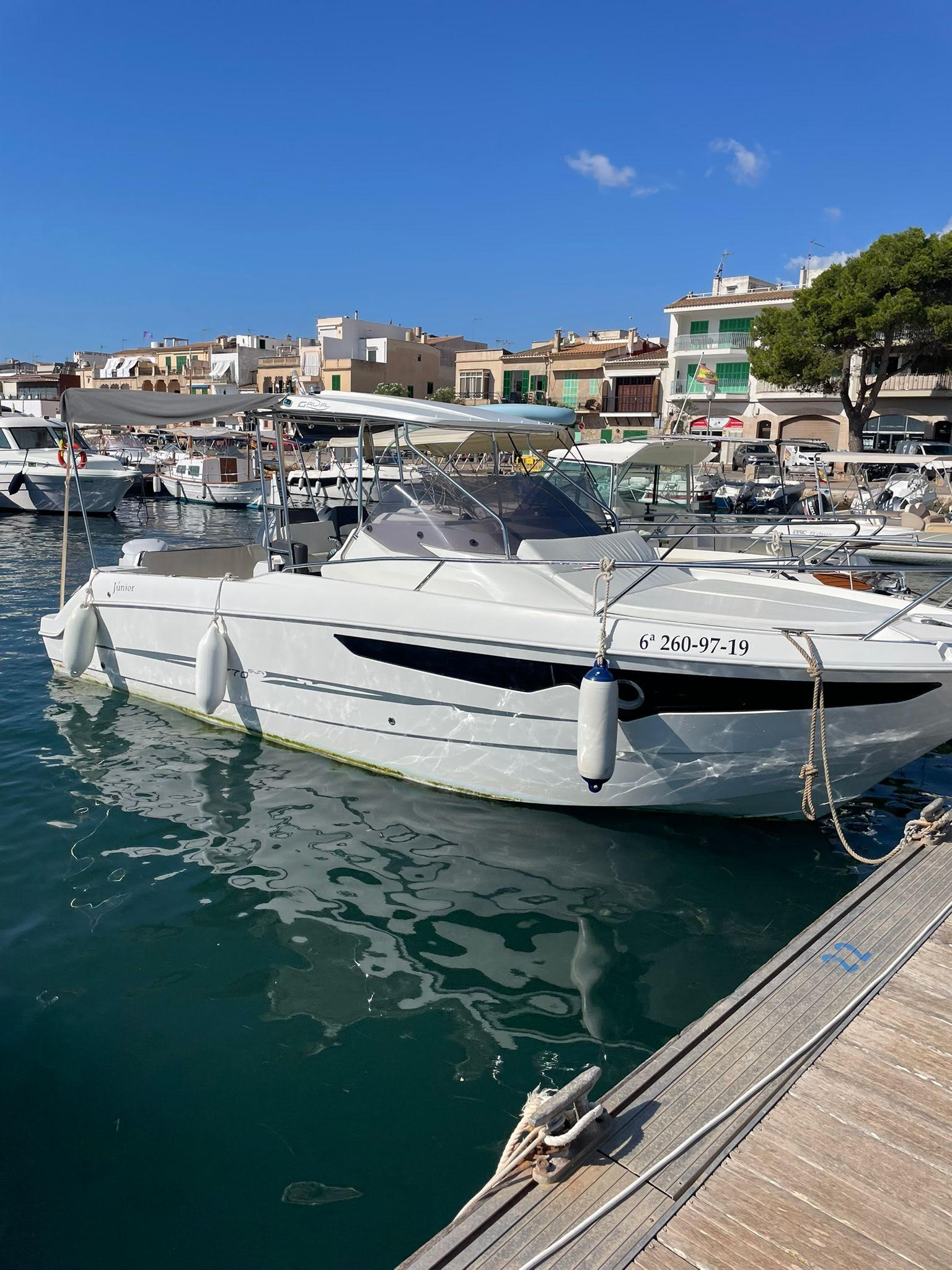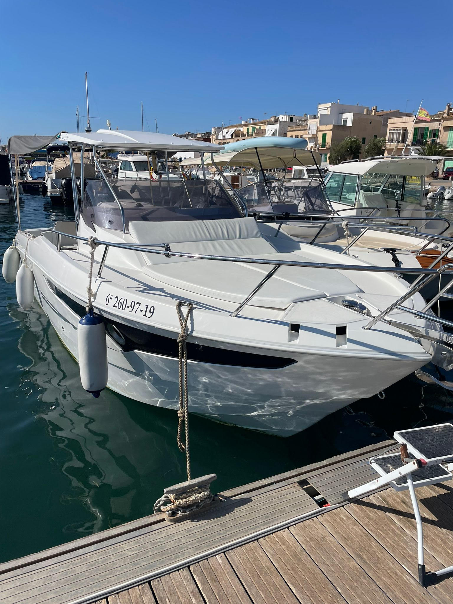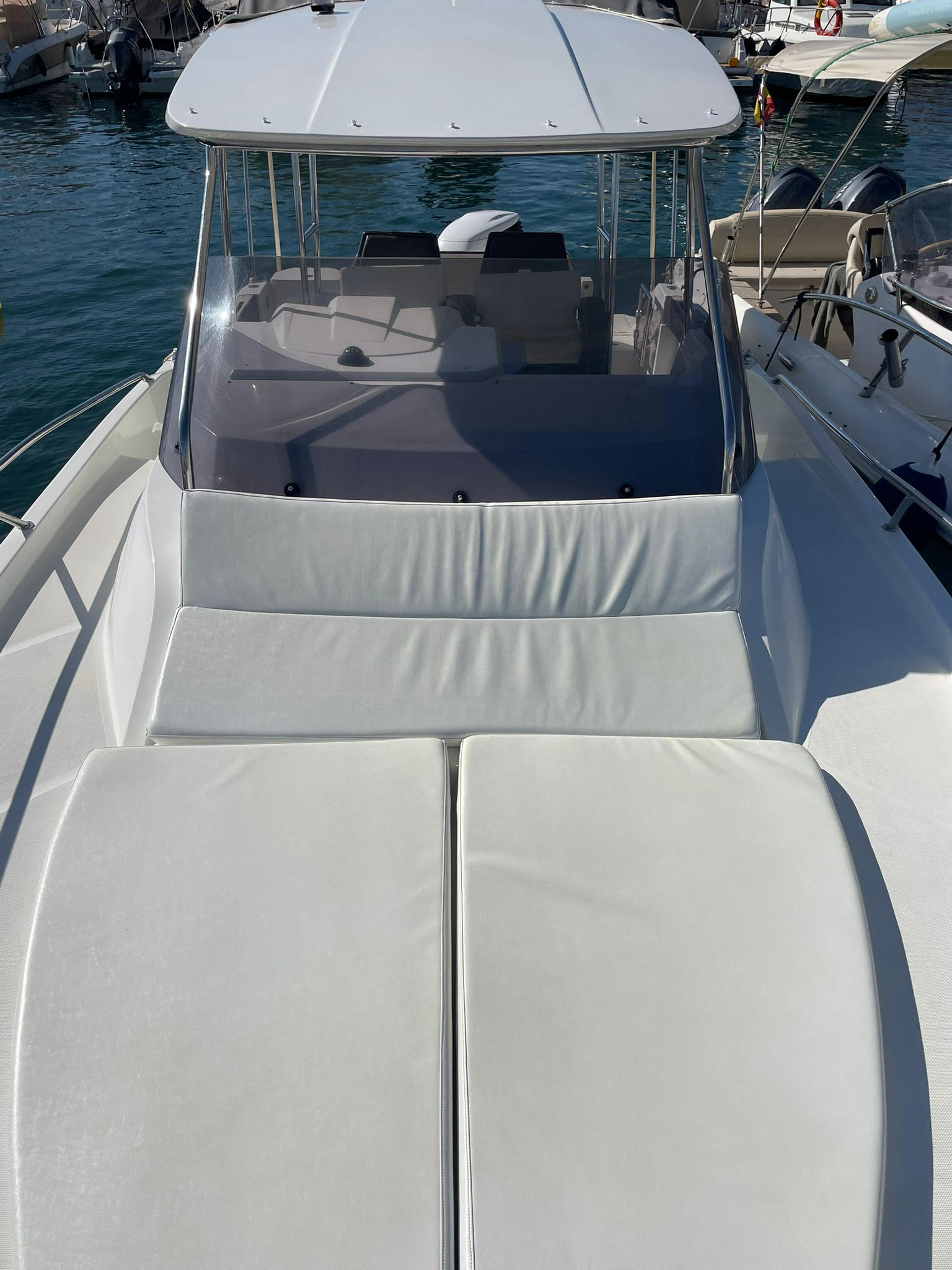 EQUIPAMIENTO: Equipo música BT, Toldo Bimini en Proa y en Popa, Ancla Eléctrica, Escalera de Baño, Camarote, Lavabo, WC, Chalecos Salvavidas, Nevera Integrada, Sonda y Radar.