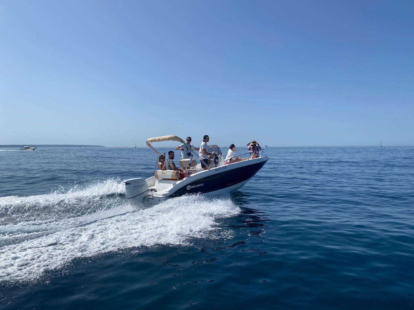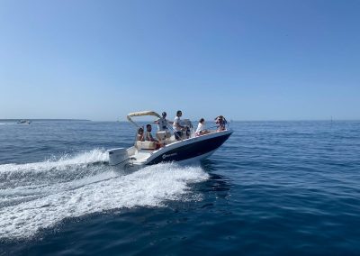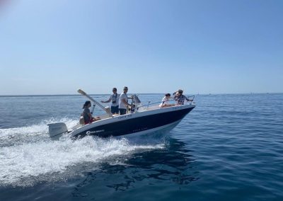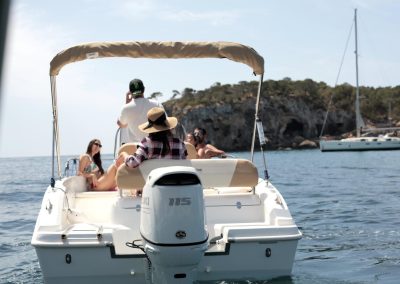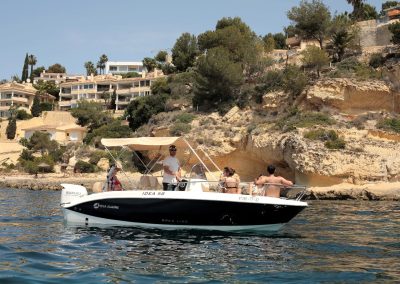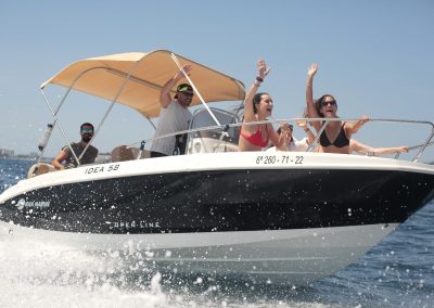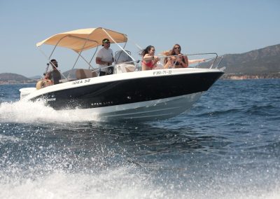 EQUIPAMIENTO: Equipo música BT, Toldo Bimini, Ancla, Escalera de Baño, Bomba de Achique Automática, Mesa, Chalecos Salvavidas, y Equipo de Salvamento Obligatorio.