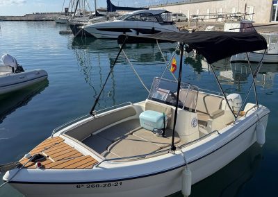 EQUIPAMIENTO: Equipo música BT, Toldo Bimini, Ancla, Escalera de Baño, Chalecos Salvavidas y Nevera Portátil.